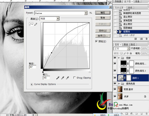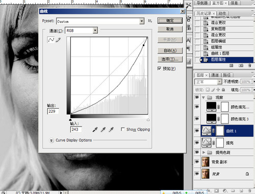 核心的一步,在观察组下方,建一个提亮的曲线层,不要提得过亮,一般半格就差不多(我在网上看到的,不知道对不对)。