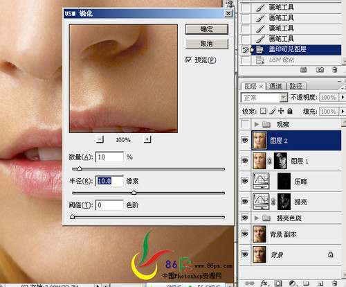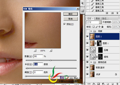 十四、盖印图层,USM锐化,大半径,小数量,锐化轮廓(图十四)。