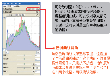 在Digital Photo Professional(DPP)中可以进行比ZoomBrowser EX的RAW Image Task更高端的RAW显像。工具调色板分为“RAW”、“RGB”和“NR/镜头”3种。
